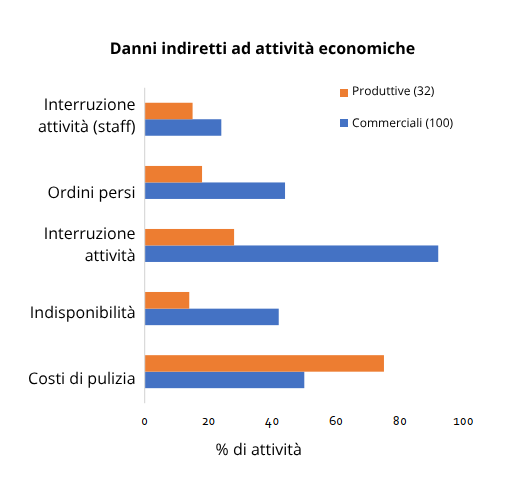 Nell'immagine, distinguendo sempre tra attività produttiva e commerciale, i danni indiretti per tipologia.