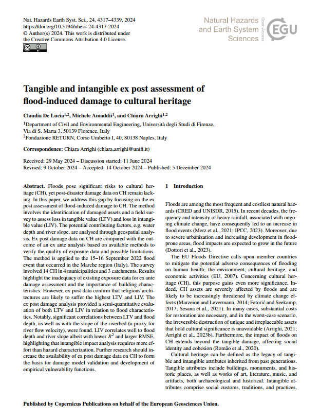 Lo studio rappresenta probabilmente il primo approccio sistematico per la valutazione quantitativa ex post dei danni tangibili e intangibili al patrimonio culturale, fornendo una metodologia replicabile e dati empirici fondamentali per migliorare la gestione del rischio alluvionale per i beni culturali.